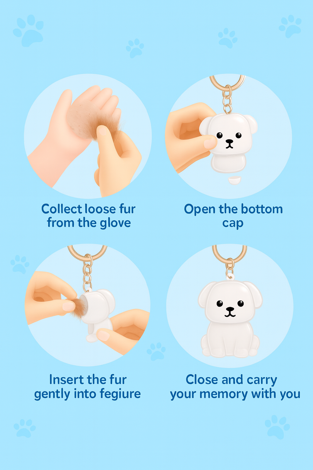 Miej zawsze przy sobie cząstkę swojego ukochanego zwierzaka. Brelok Furever to wyjątkowa i serdeczna pamiątka, zaprojektowana tak, aby pomieścić niewielką ilość prawdziwego futra Twojego pupila. Wykonany z przezroczystego, trwałego materiału, każdy brelok eksponuje futro w środku, zamieniając go w osobistą, jedyną w swoim rodzaju kapsułę pamięci.