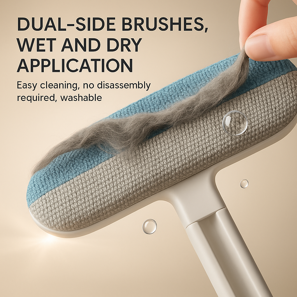 ✅ Dual-sided design – one side to lift and loosen stubborn hairs, the other to smooth and finish. ✅ Multi-purpose use – perfect for clothes, furniture, rugs, pet beds, stairs, and more. ✅ Durable & reusable – no sticky papers or disposable rollers needed, Furforce lasts for years. ✅ Ergonomic handle – lightweight with an extended grip for comfortable cleaning, even in hard-to-reach areas. ✅ Easy to clean – simply rinse and reuse, ready within seconds.